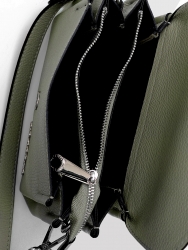Длина сумочки Di Gregorio (Ди Грегорио) - 24,5 см (по дну сумочки), 21,5 см (по верхнему краю), ширина по дну - 8 см, высота - 15 см. Сумочка закрывается клапаном на магнитную кнопку. Внутри центральное отделение на молнии, сбоку отделение на молнии. Сумочка носится на плече, максимальная длина 122 см (регулируется).